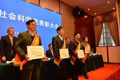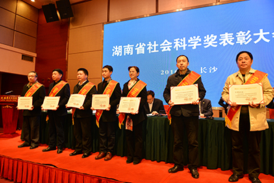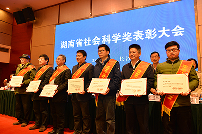 会议分为两个阶段。第一个阶段,由宋智富主持会议。李友志宣读《中共湖南省委 湖南省人民政府关于表彰湖南省第十二届社会科学优秀成果、第五届优秀社会科学专家、第三届优秀青年社会科学专家的通报》,随后对获奖代表进行颁奖。获奖代表湖南商学院副院长王明高教授、湖南师范大学道德文化研究中心主任王泽应教授、湖南省社科院产业经济研究所所长郭勇研究员分别进行发言。
